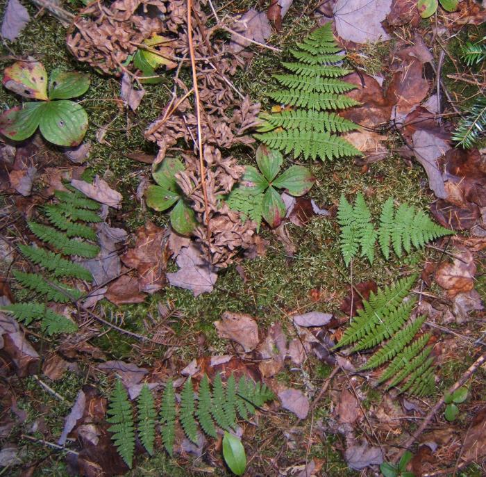 The fern I found is an evergreen fern, pressed close to the earth this time of year.