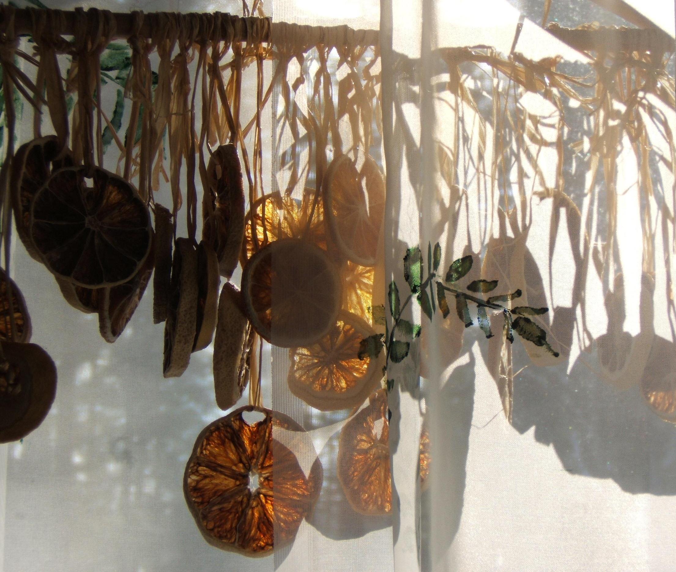 The sunlight shining through those dried orange slices, in combination with the shadows on the sheer curtains, was magical.