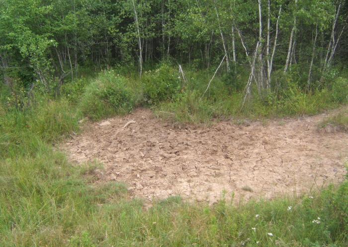 Not far from Gagetown, on Route 102 in New Brunswick, is an interesting bit of wetland. Sometimes there is water in this small area but more often it is just wet mud. During periods of little rain, the mud becomes cracked and dry. The area never seems to grow any of the grasses or other wetland plants typical of wet areas.
