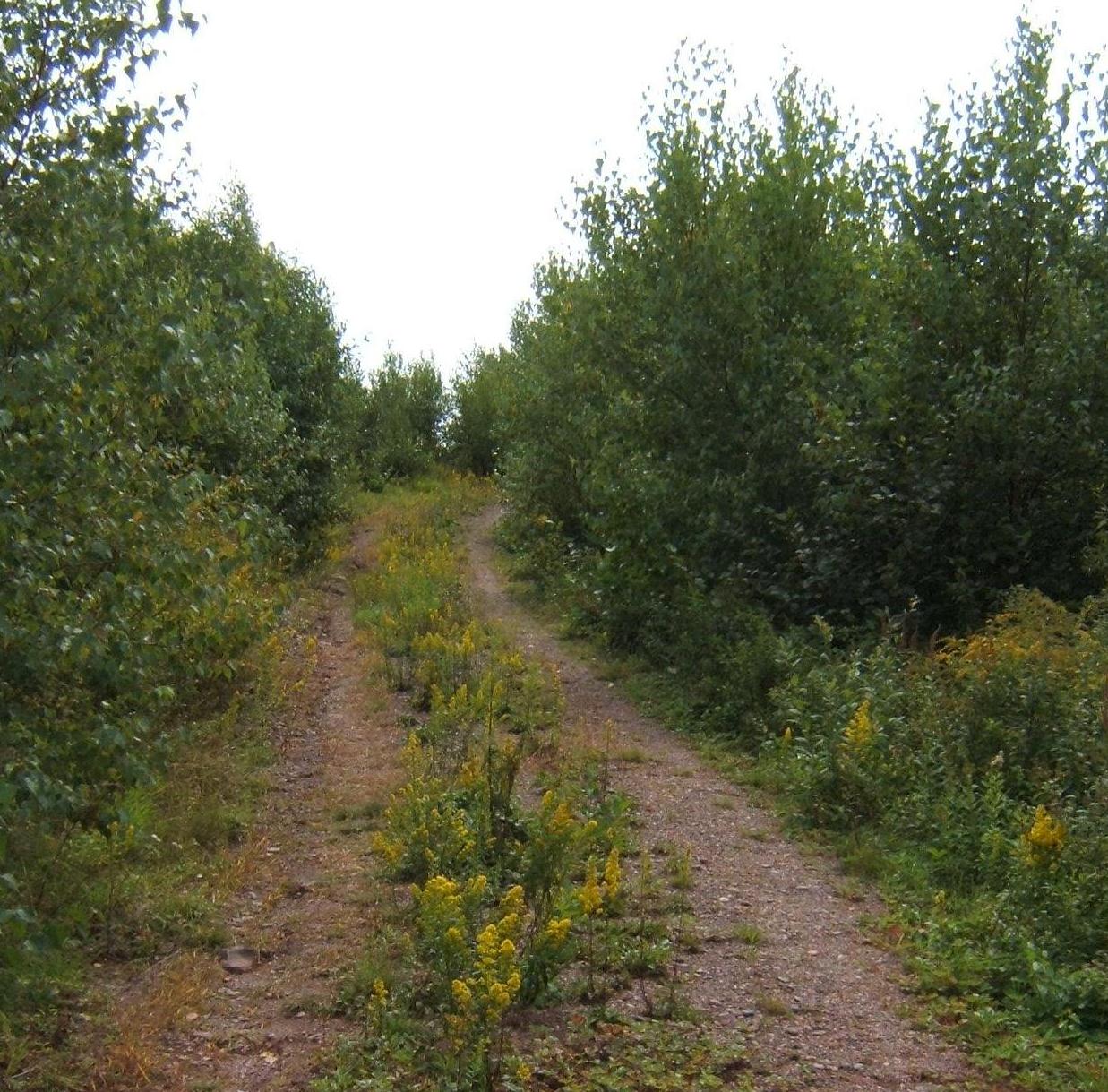 You can see the before and after shots of the road trimming in the three photos below. What you can’t see in the middle photo is the smile on my husband’s face as he mows! He was able to trim, in a few minutes, the trail it took him days to cut with the bush-saw last year.