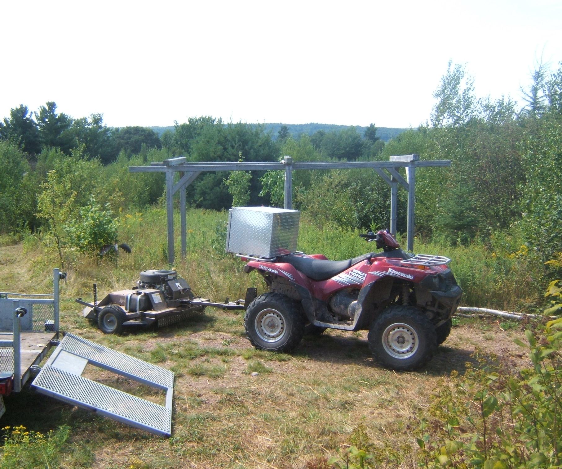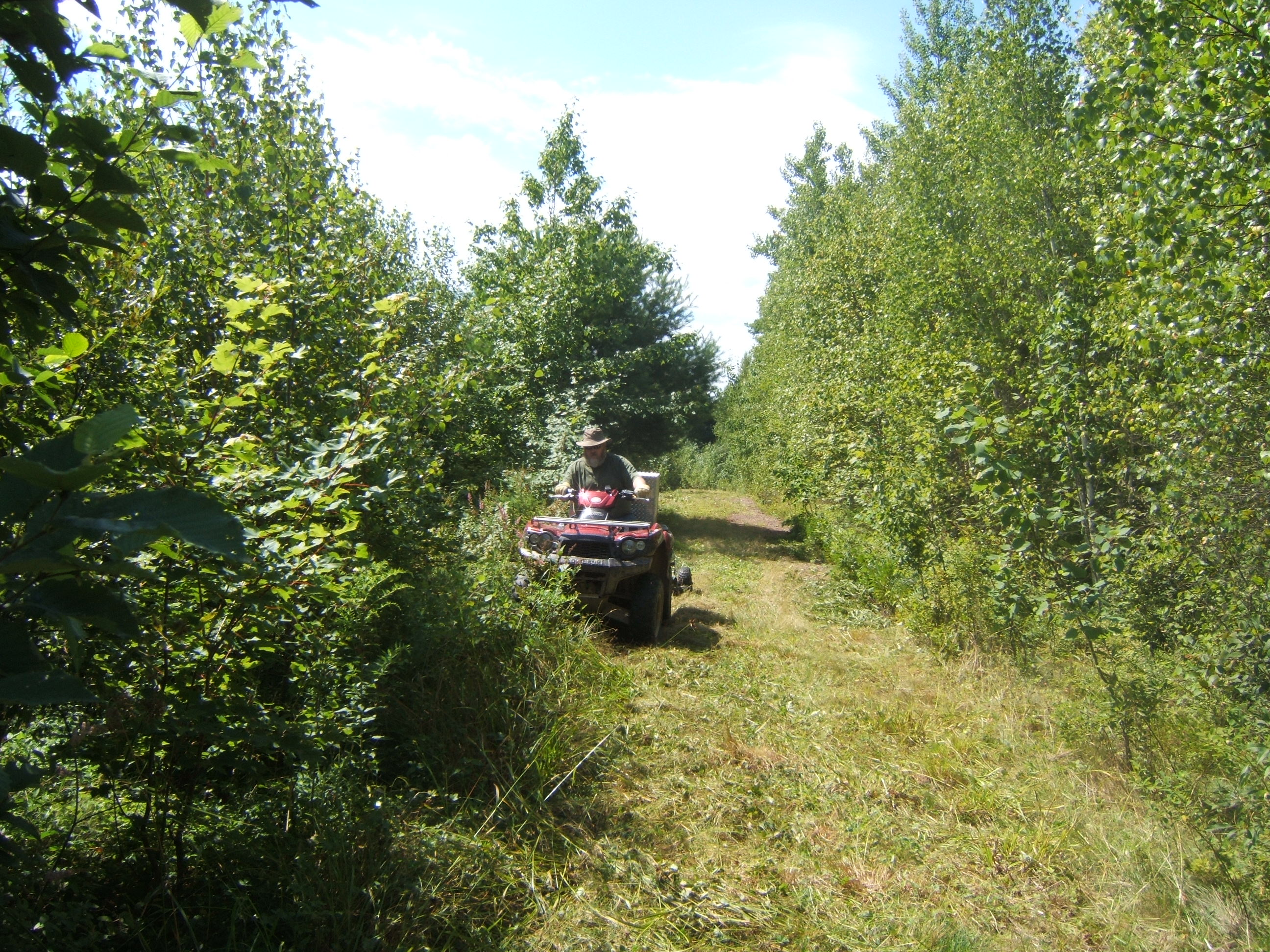 Now, we have the solution. We bought a rough mower that pulls behind the ATV. It is awesome! My husband has fun and is able to make huge progress. In just a couple of days, we have our road clear, there is a labyrinth of trails where we can walk, we have trimmed a selection of blueberry patches and we have our turning area restored at the lake end of the property. Notice the use of the word ‘we’, although my husband does all the work!