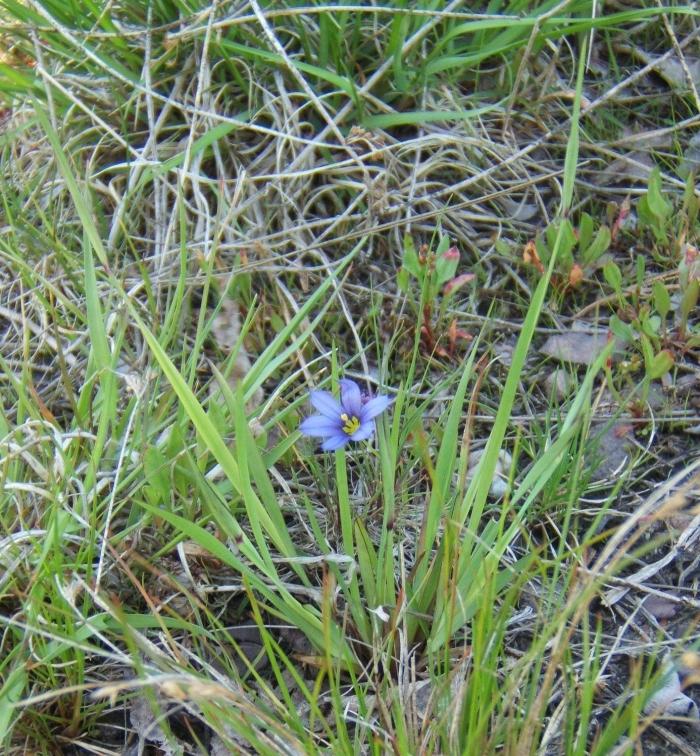 All grass is not grass. In spring, some of those green blades reveal their true identity. You look down, and a blue eye stares back at you. You have found Blue-eyed Grass, Sisyrinchium montanum Greene.