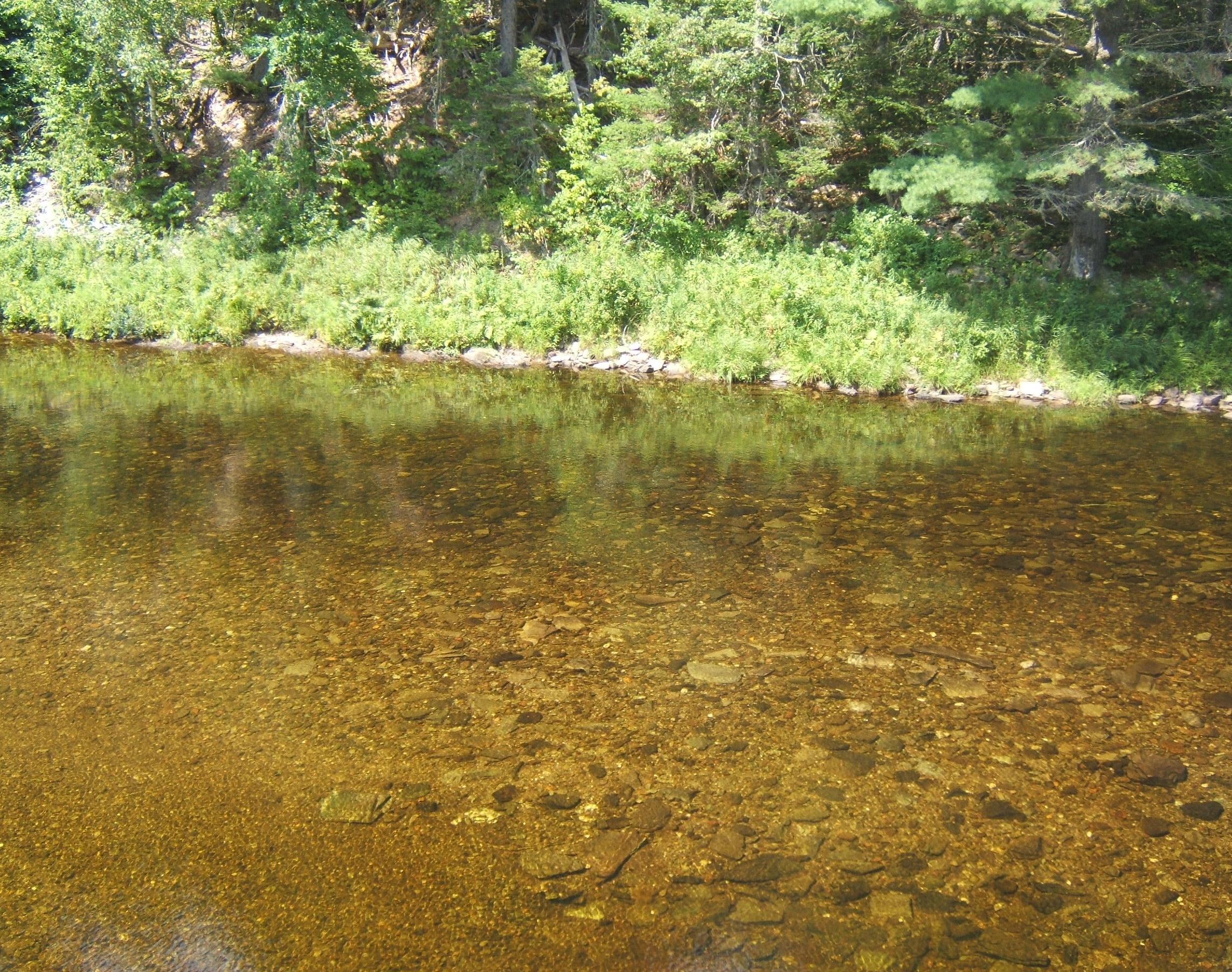 The water at this point in the river is shallow and clear. I watched for a long time to see a fish, but they will be hiding in the cooler waters of the deeper pools.