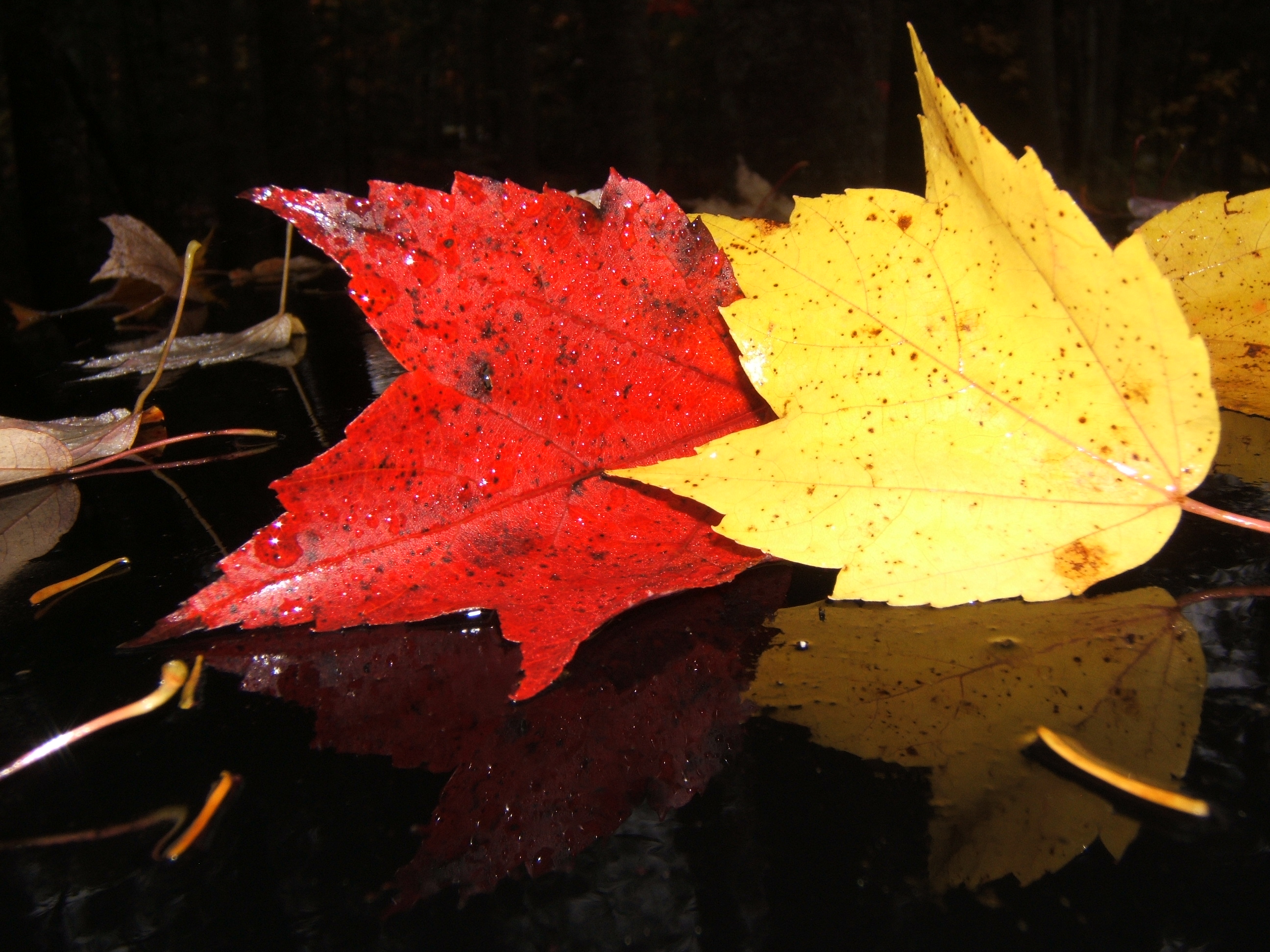 one leaf bleeds into water