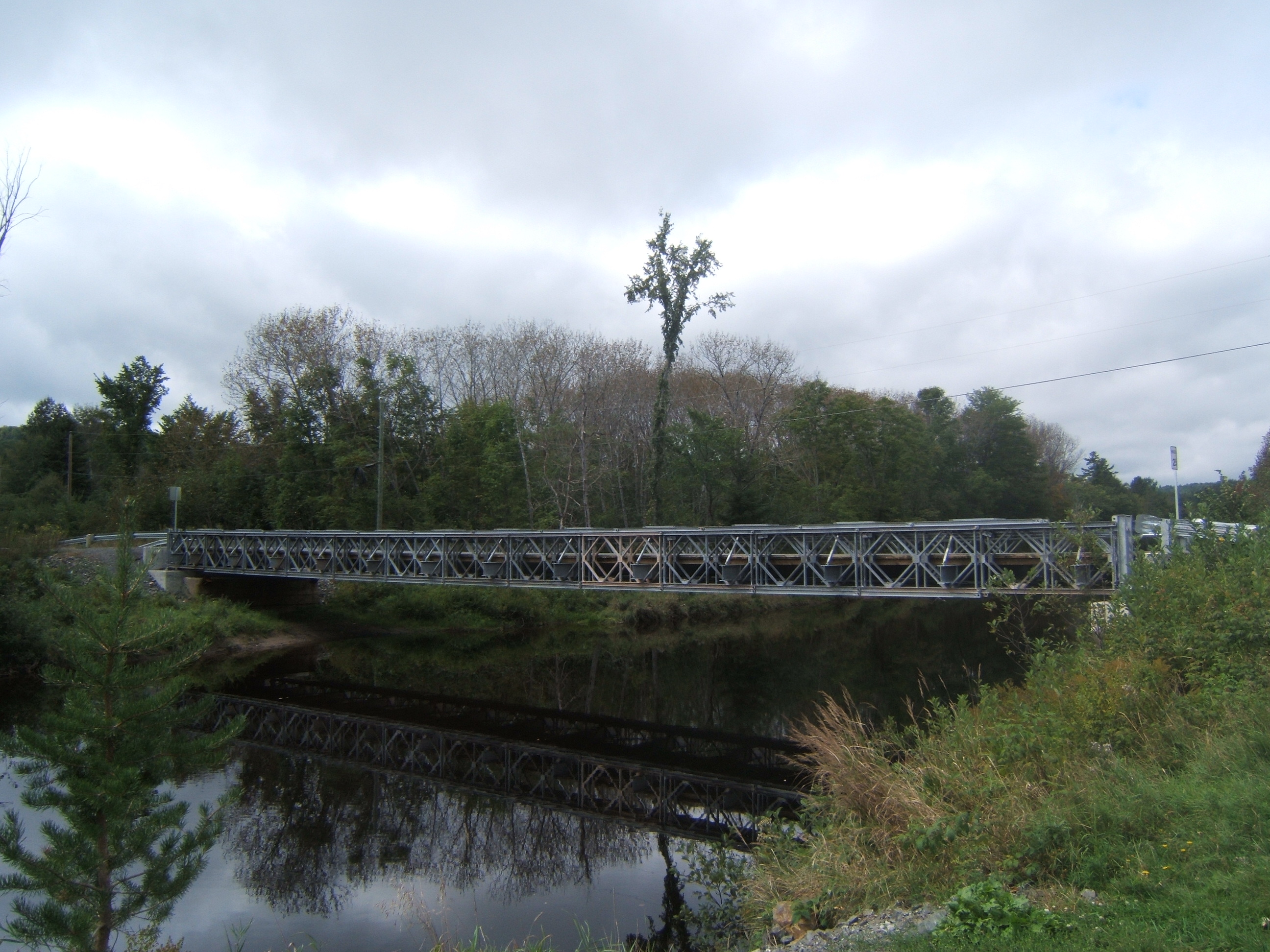 A short drive on a pretty country road along the Keswick River brought us to the bridge… a metal Bailey bridge, constructed to cross the river at the point where the covered bridge had once stood. The new bridge was sturdy and had its own charm, but it was so disappointing to know the old covered bridge was gone forever. The Stone Ridge Covered Bridge was lost to fire on October 10, 2008.
