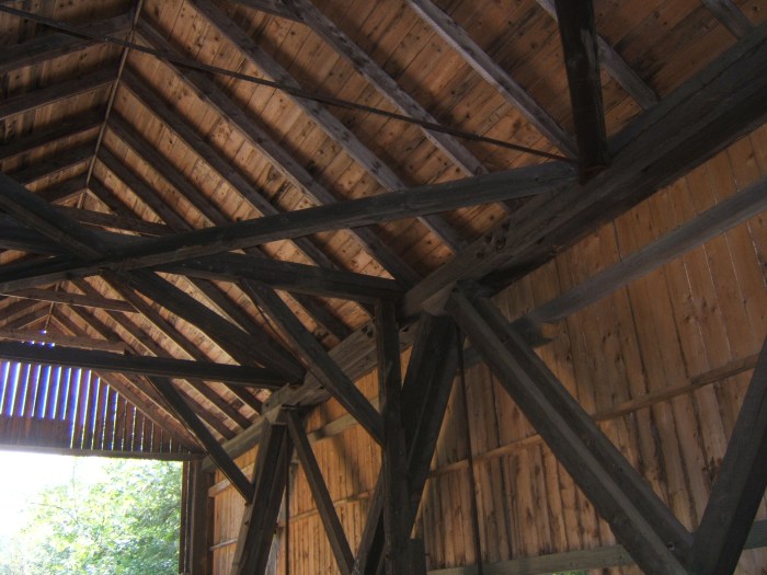 in the beams of the covered bridge