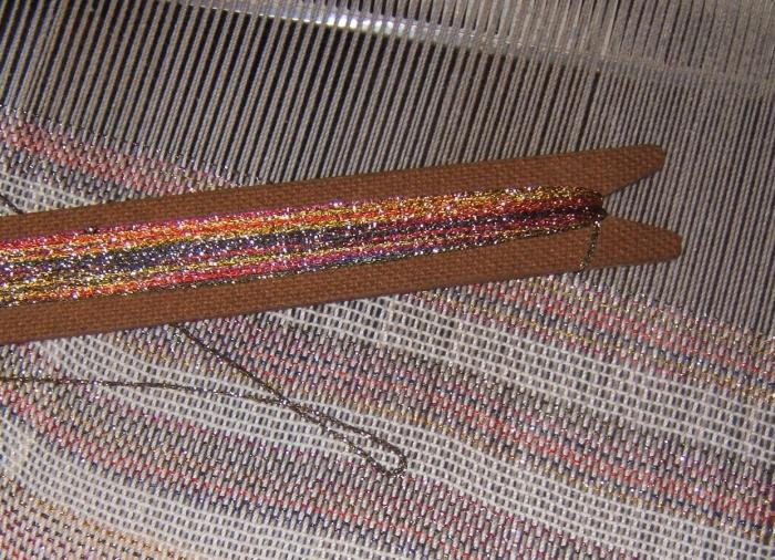 My loom is a simple floor loom, 24 inches wide. I bought it at a country auction, about 15 years ago. My sister and I were among the stragglers at the auction, trying to outlast a heavy rain. In the corner, we saw a bundle of varnished wood and some metal parts. “I think that’s a loom,” whispered my savvy sister. When the item came up for bid, there were few left in the audience, and no one knew just what ‘it’ was. I can’t remember what I paid for it, but I know it was a bargain.