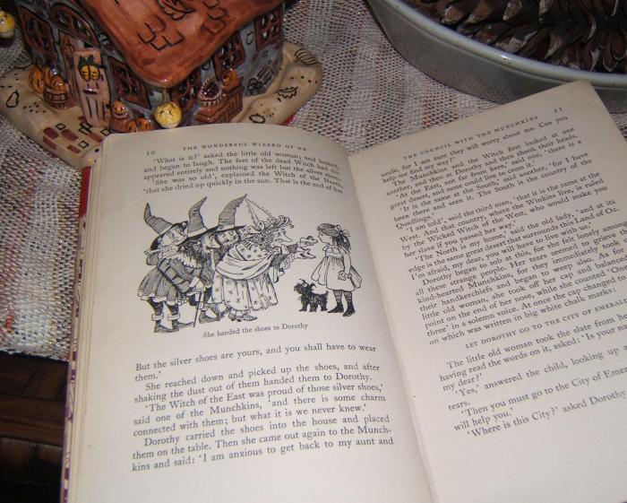 Red shoes. A use of symbolism to support an underlying theme. In the The Wizard of Oz, the 1939 film, Dorothy wore ‘ruby slippers’ to get back home, where she desperately wanted to be. In the book, The Wonderful Wizard of Oz by L. Frank Baum, 1900, Dorothy actually wore silver shoes!