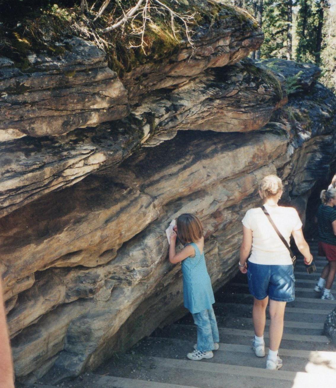a born writer – a young girl, writing about her experience at the Falls, on any surface she could find – I snapped this photo at Athabasca Falls in Alberta in 2003