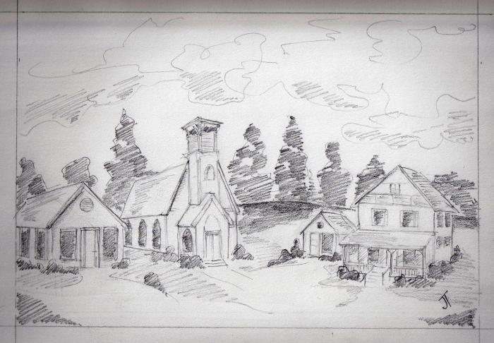 From the first thought I had about my novel, I knew I wanted to include a re-purposed church in my setting. I thought it would be an ideal location to tell stories about writers in search of contemplative and quiet spaces to do their work. As I thought about equipping a writers’ retreat, I realized more spaces would be needed, for eating and sleeping for example, and I thought about bringing two other buildings to the location, a house (the church manse) and a sleeping quarters (the church hall). I mentally set them on the site of our (real) property by the lake and … taa-daa! … I had the setting for my book.
