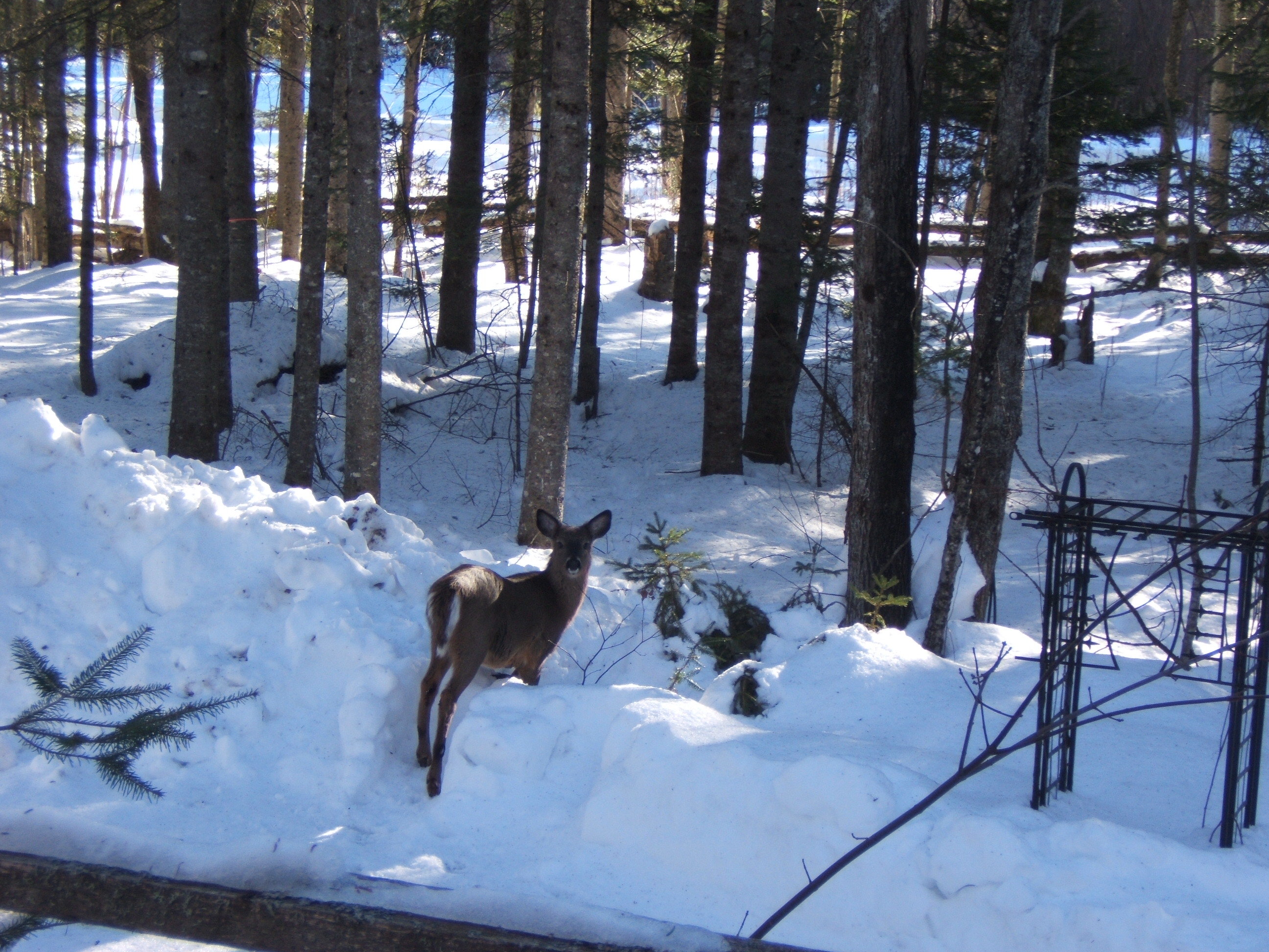 The deer have liked the new feeding station. We see them almost every day. They empty the feeder too quickly and also visit the compost pile. We don’t deliberately feed the deer, but they visit the feeders anyway.