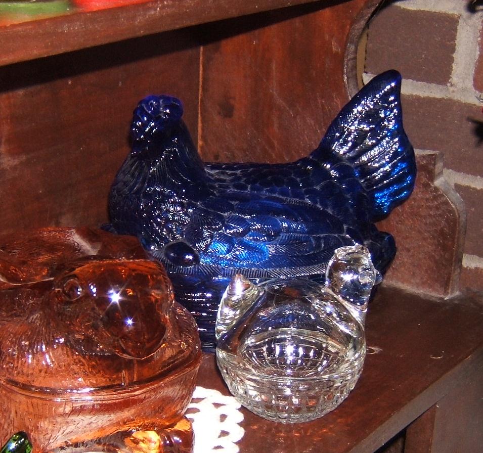Most of the animals in my collection belong in one of three categories: covered dishes, candle holders and dresser jars. A couple of the pieces belonged to my Mom. A couple of them are pieces she gave me as gifts. The rest, I found over the years at antique stores or auctions.