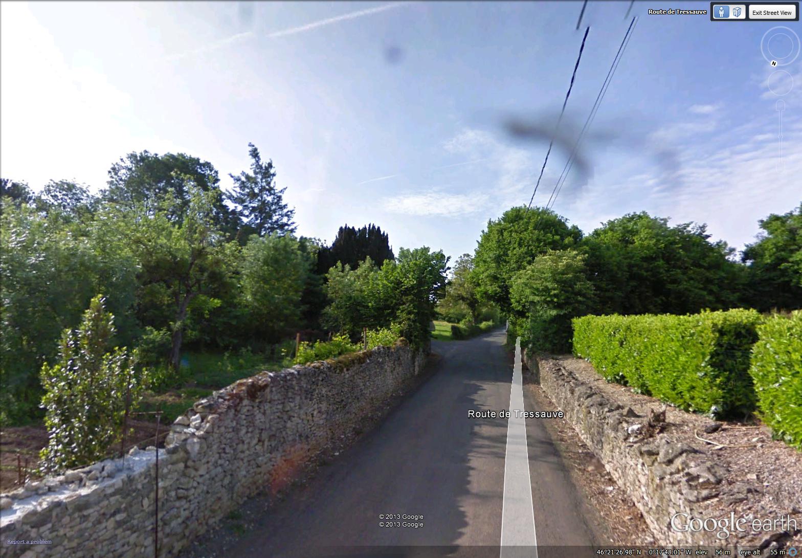 So I did what all virtual bikers are able to do. I ‘flew’ a little to the south and followed a route from Villeneuve to Le Pont d’Homme, along two country roads: Rue du Moulin and Rue du Marteau.