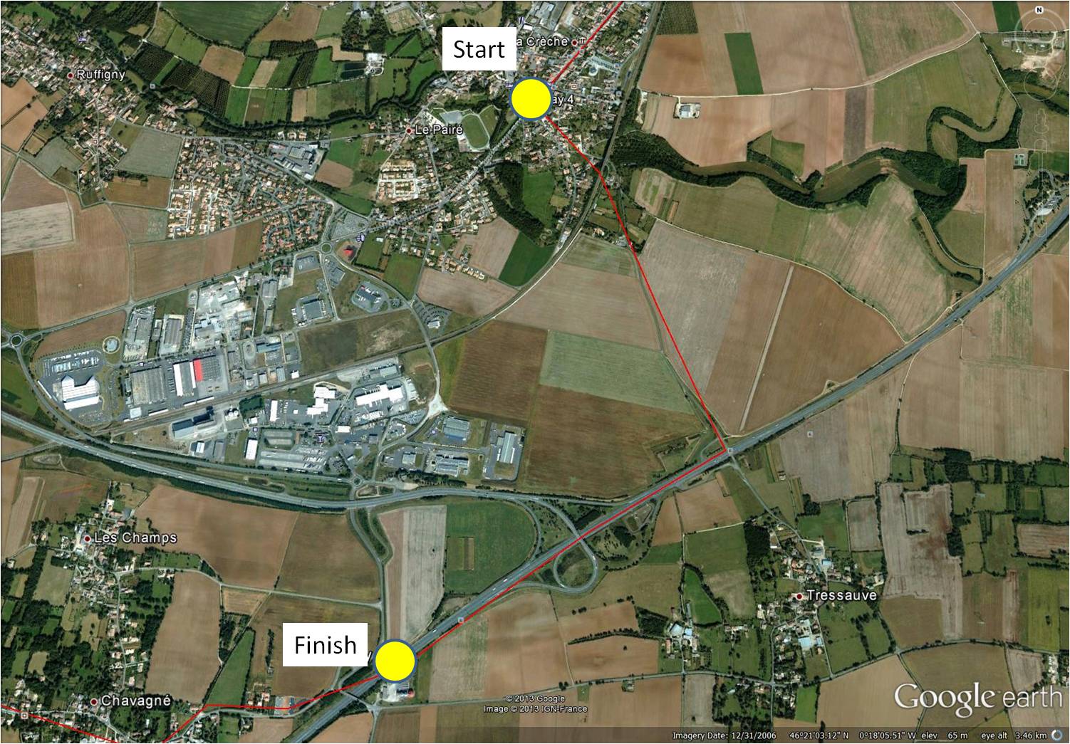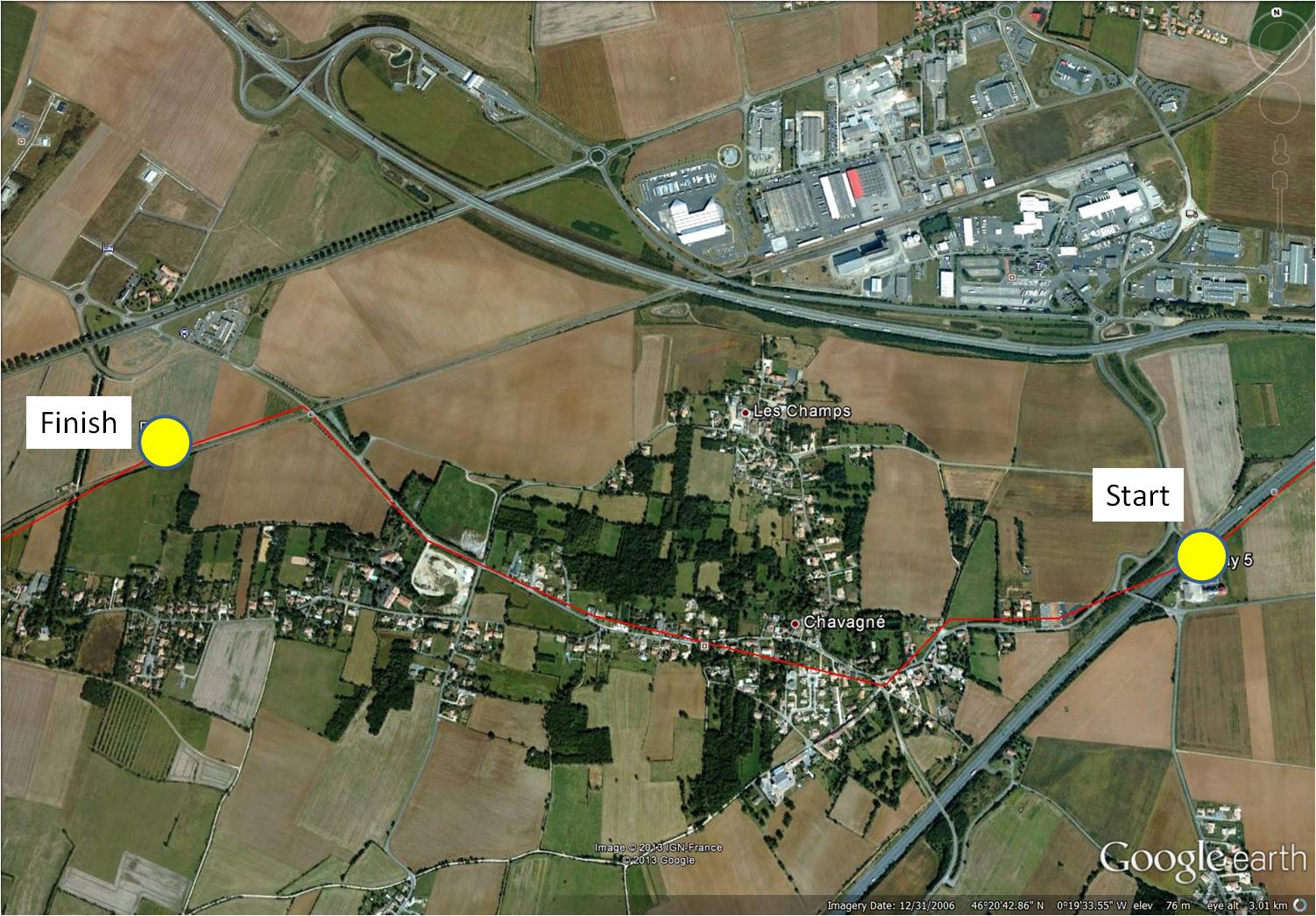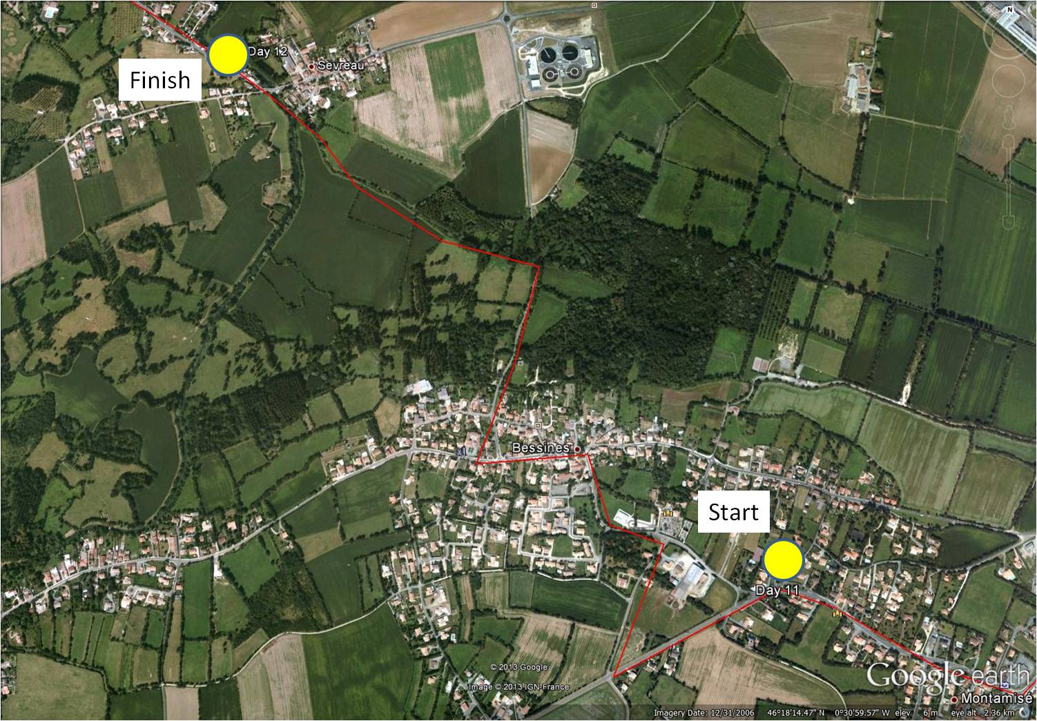 Area travelled: from ‘outskirts of Niort’ to ‘edge of Niort’