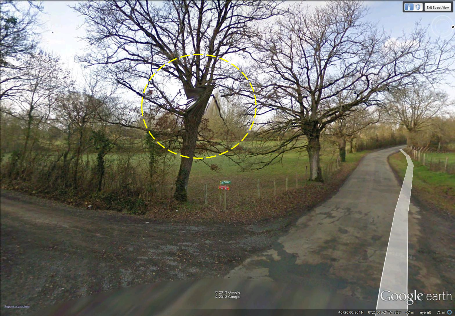 diamond in tree on Rue du Marteau (look closely – probably a drop of water on the Street View camera!) (image from Street View)