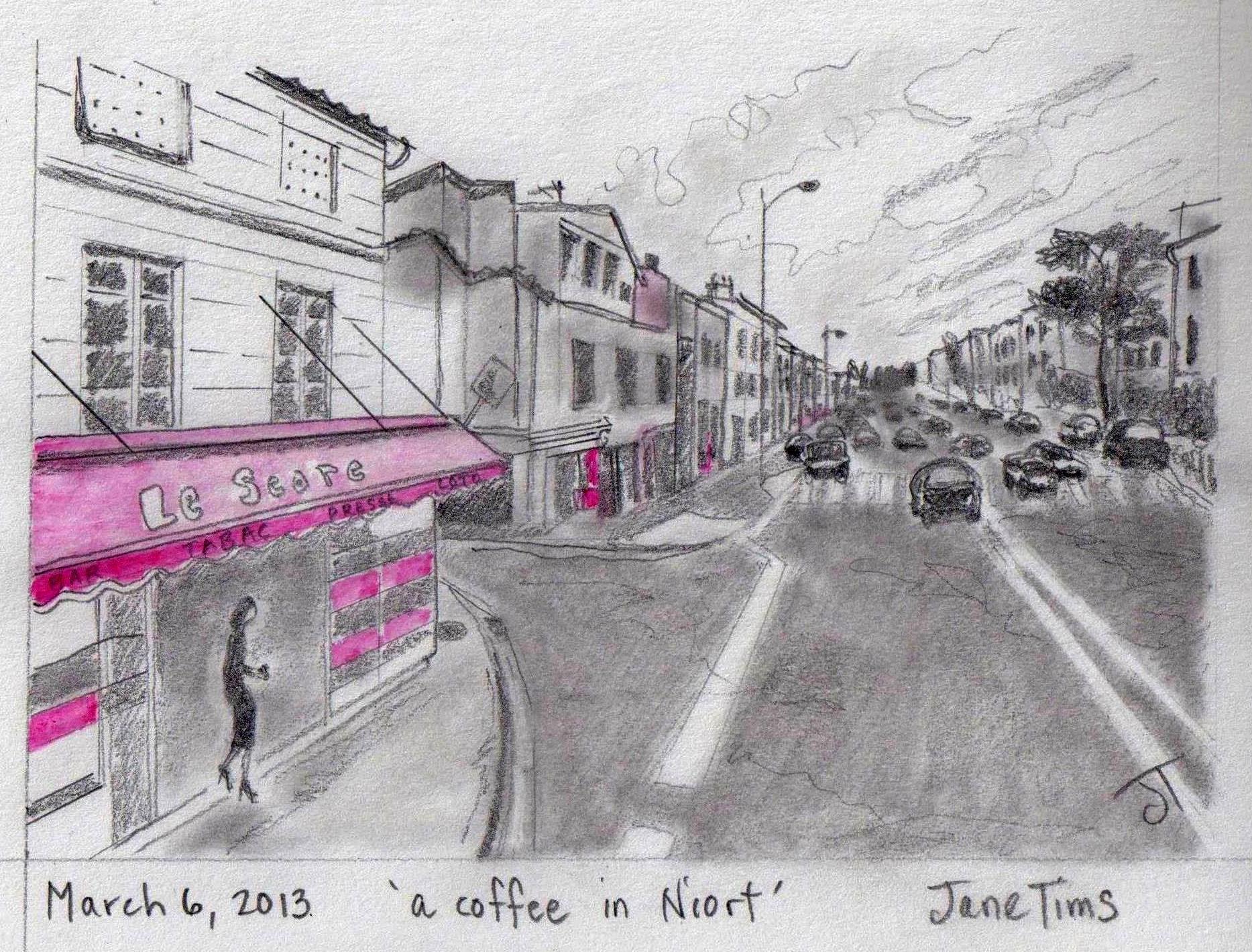 Best view: a lady buying coffee at a shop in Niort
