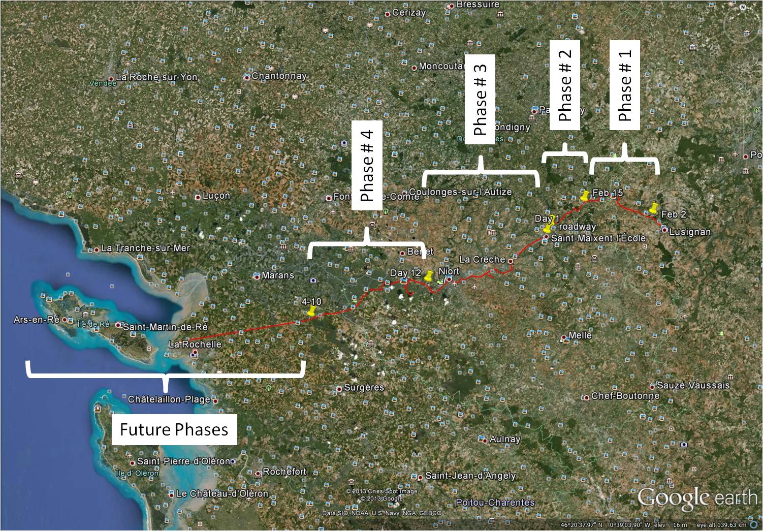 This ends Phase 3 of my virtual biking adventure. I plan to continue this virtual bike trip in Phase 4, a 10 day trip from Magné to Ferrières.
