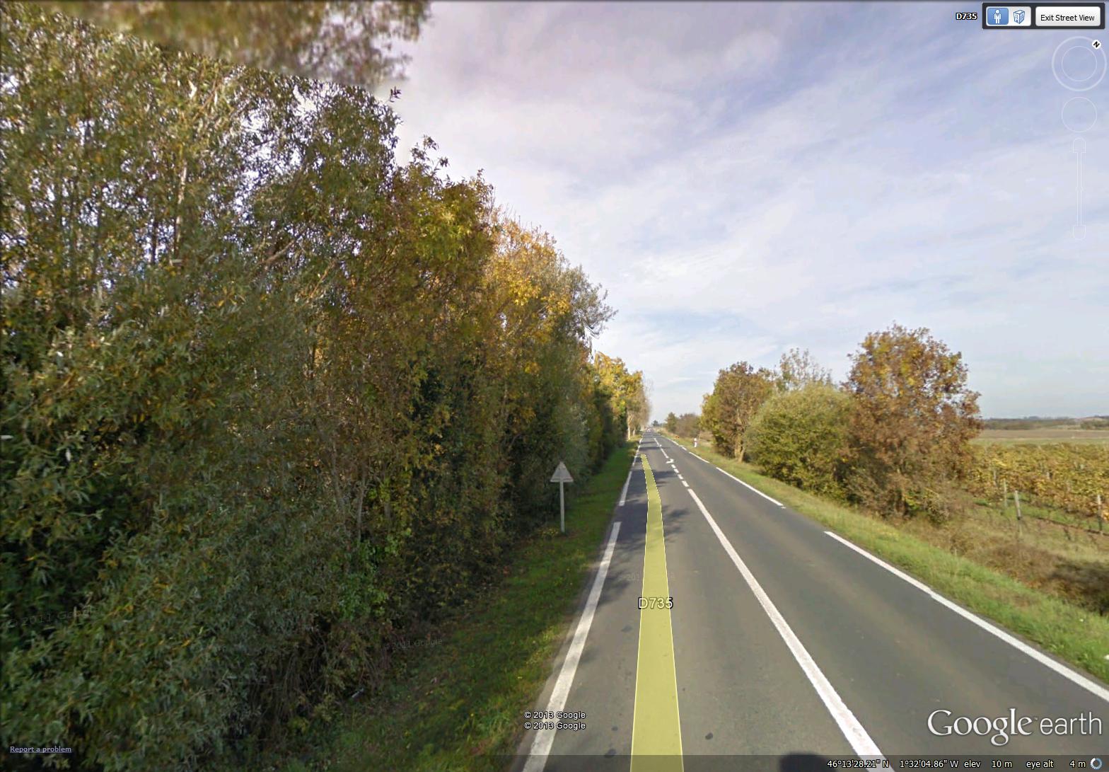 road along beach near Le Martray on Ile de Ré – beach is across the berm to the right (image from Street View)