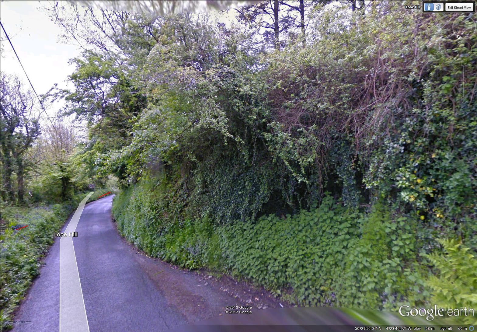 Looe Hill (pronounced to rhyme with ‘who’) is probably the most magical, interesting place I have discovered so far on my virtual journey. Much of the length of the road is a narrow path between high banks. The overhanging trees must create a microclimate where wildflowers and ferns thrive …