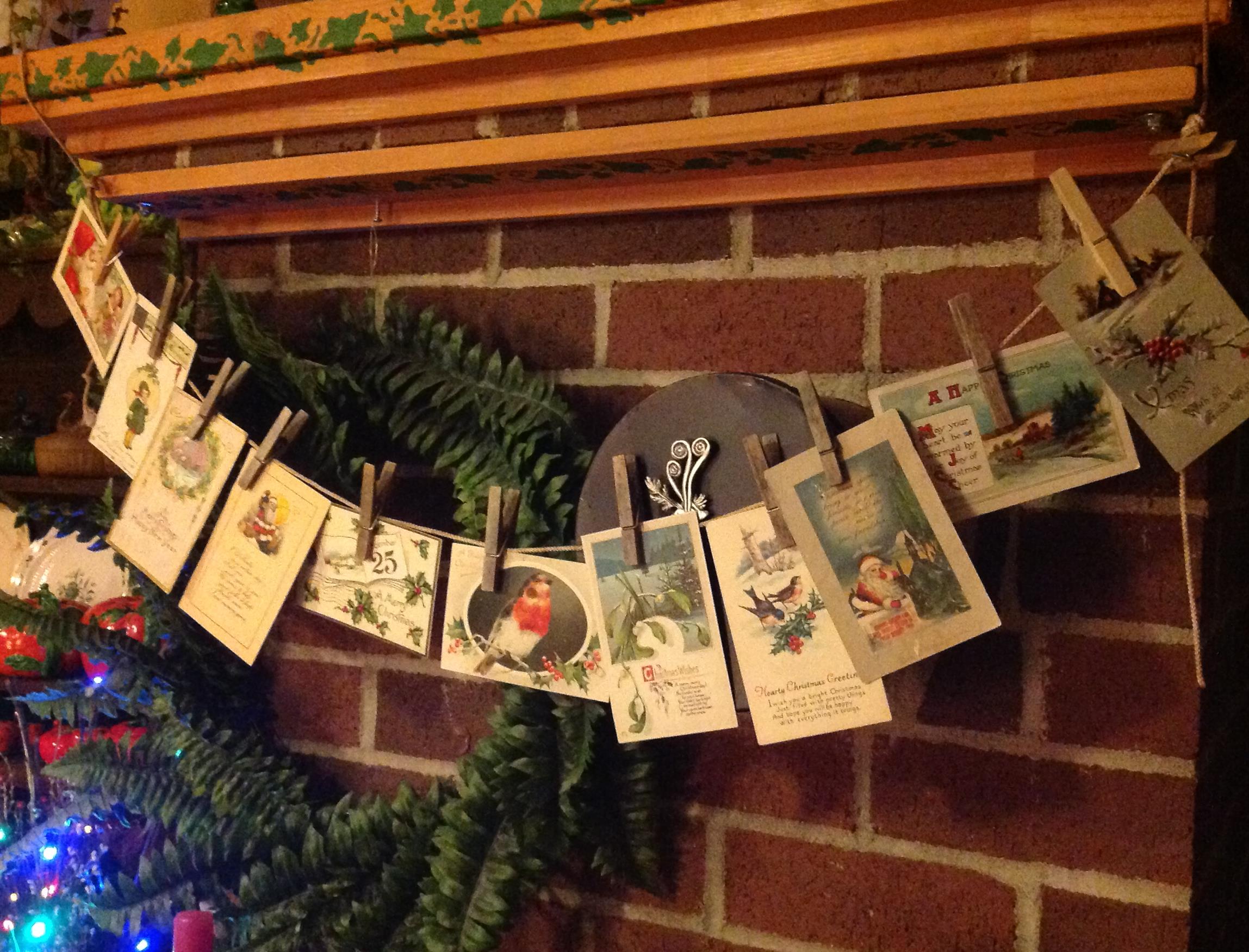 For a few years, I have hung examples from my collection of postcards on a string above the fireplace. I have postcards for all the major holidays – New Years, Valentine’s Day, St. Patrick’s Day, Thanksgiving, Halloween and, of course, Christmas.