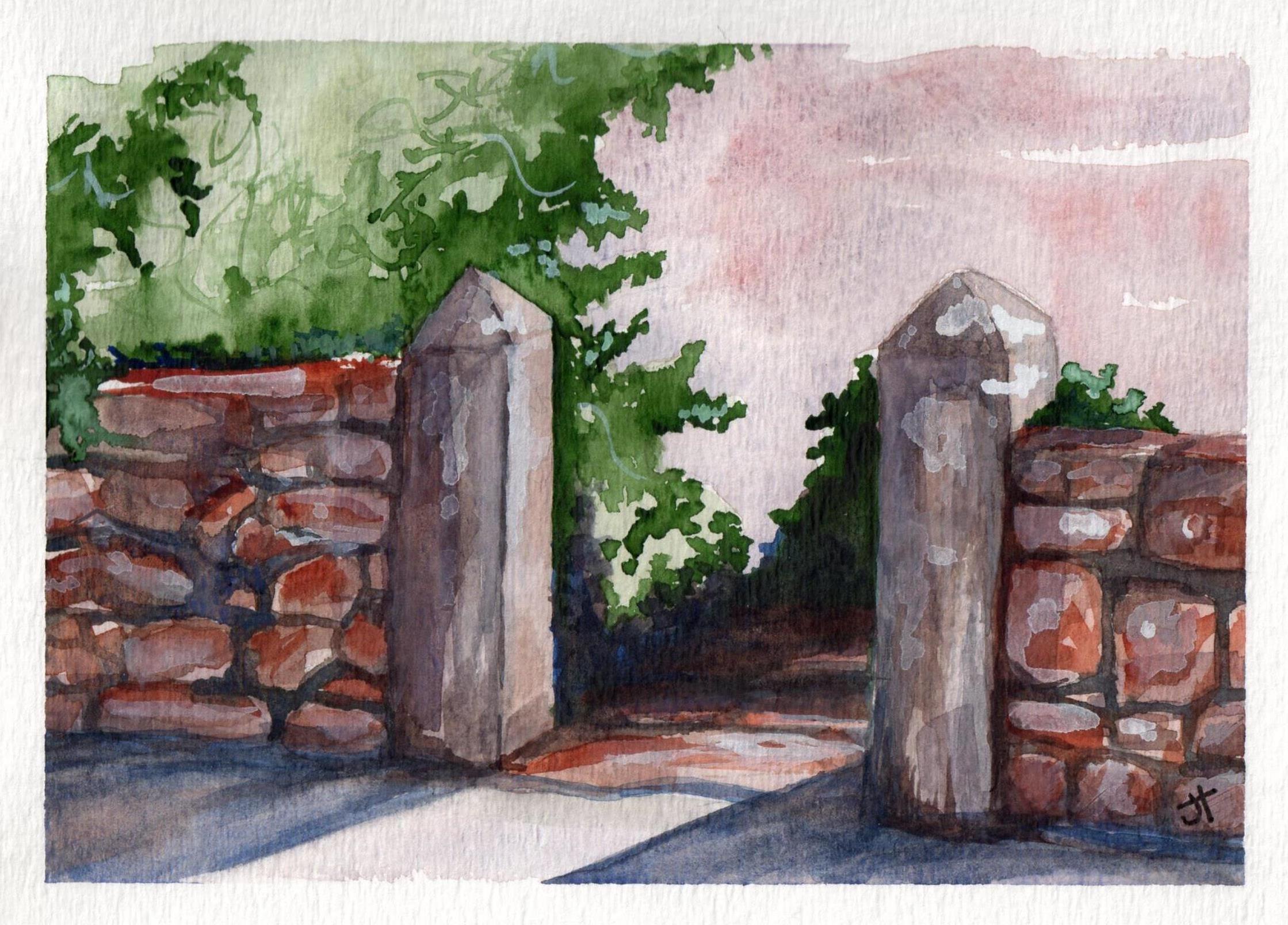 I am continuing to paint in my Cornwall gates series. This past weekend, I painted another gate from Ponsanooth entitled ‘enter’. Gates are meaningful to me, as metaphors for change and as representative of possibility. And the various building materials, stone, cement, wood and metal, are very enjoyable to paint …