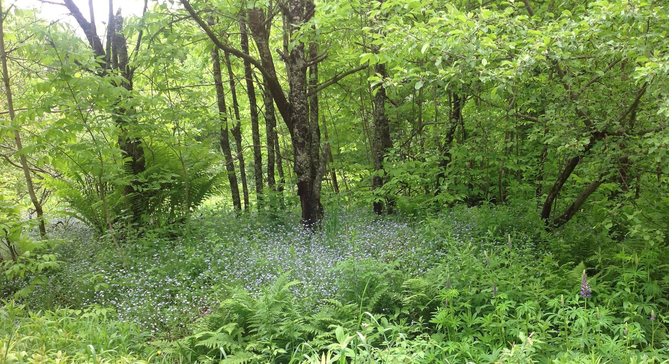 About a decade ago, we took a drive from Canterbury to McAdam on a gravel road. The memory I have carried with me for years is of a section of woodland absolutely blue with flowers. I often wondered what the flowers were and if I’d be able to find the spot again. This weekend we tried to find the place and the sea of blue in the woodland.