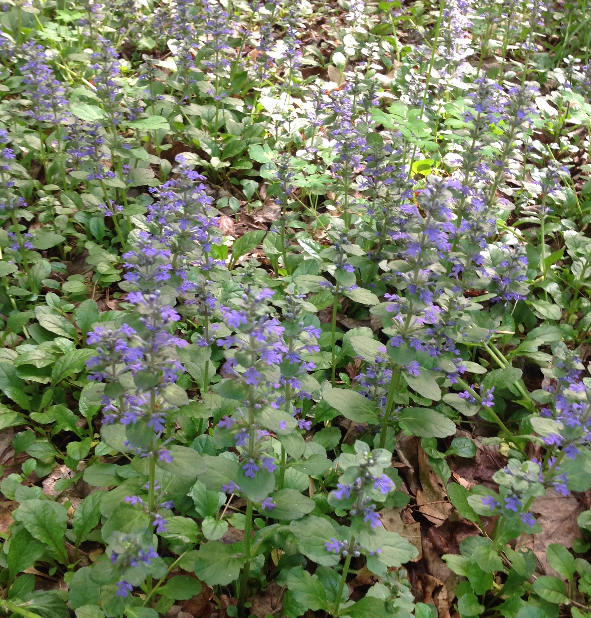 and a bunch of a ground cover plant growing in my yard, Bugleweed (Ajuga reptans) …