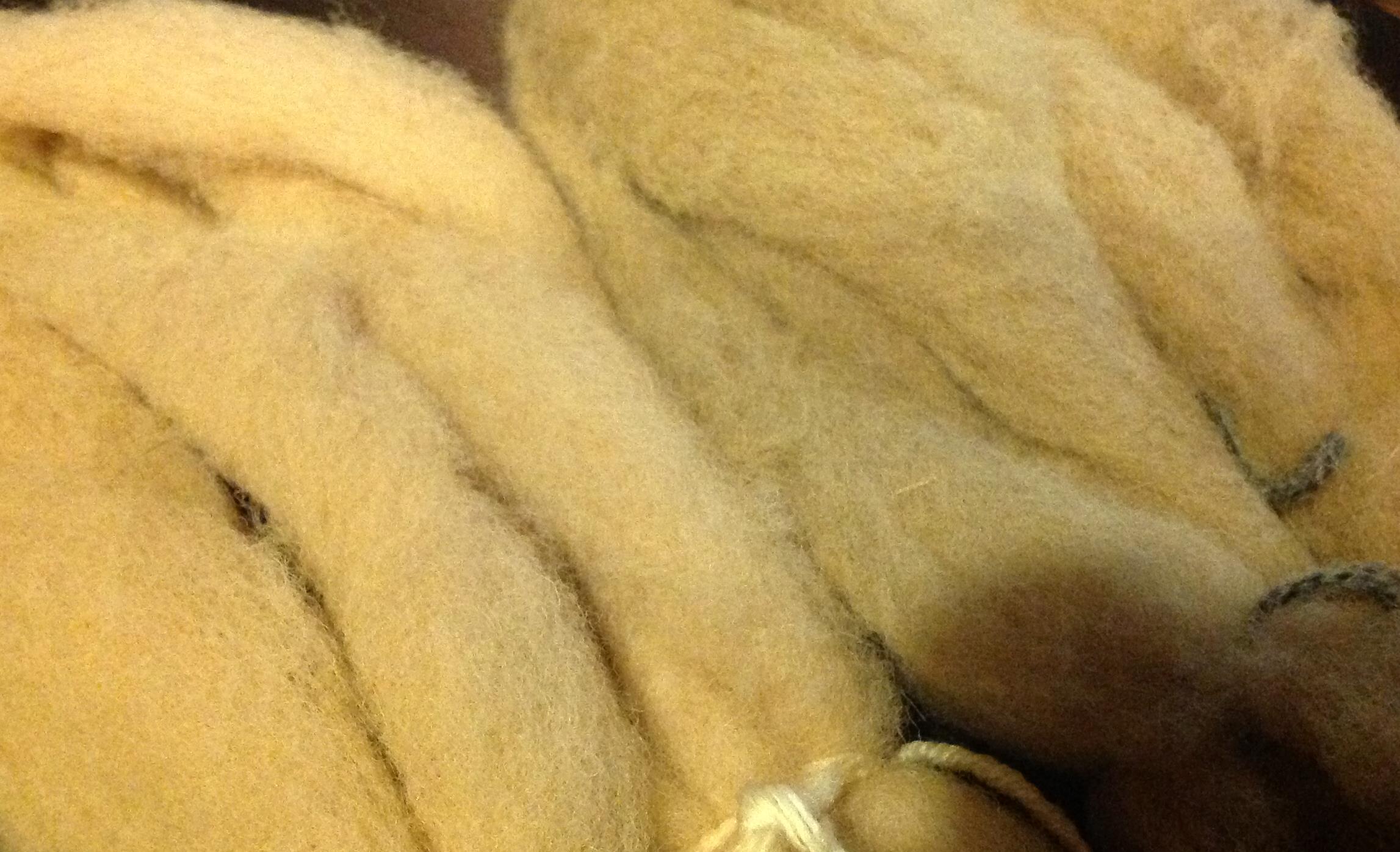 Wool roving, treated with alum and simmered in the dye for an hour turned pale yellow-brown, almost apricot in some light.