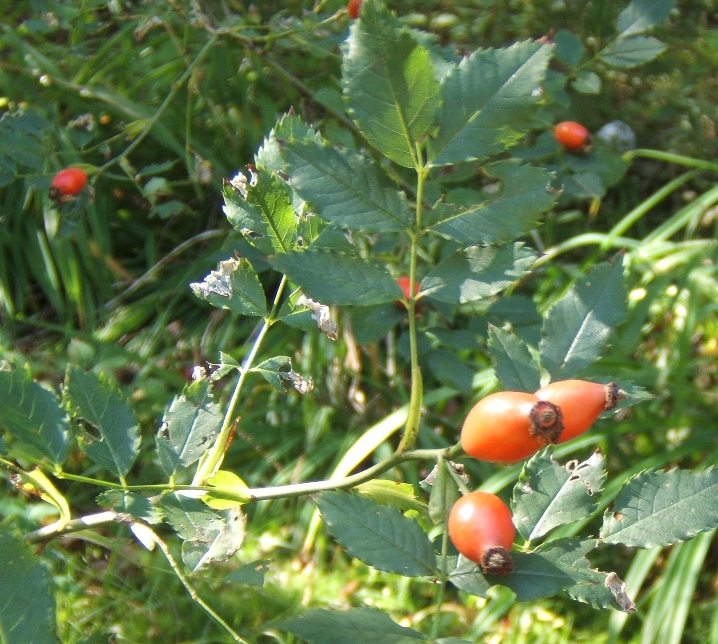Last week, I finally harvested the rose berries. I used scissors to avoid the springiness of the bush and the danger of getting smacked with those thorny branches.