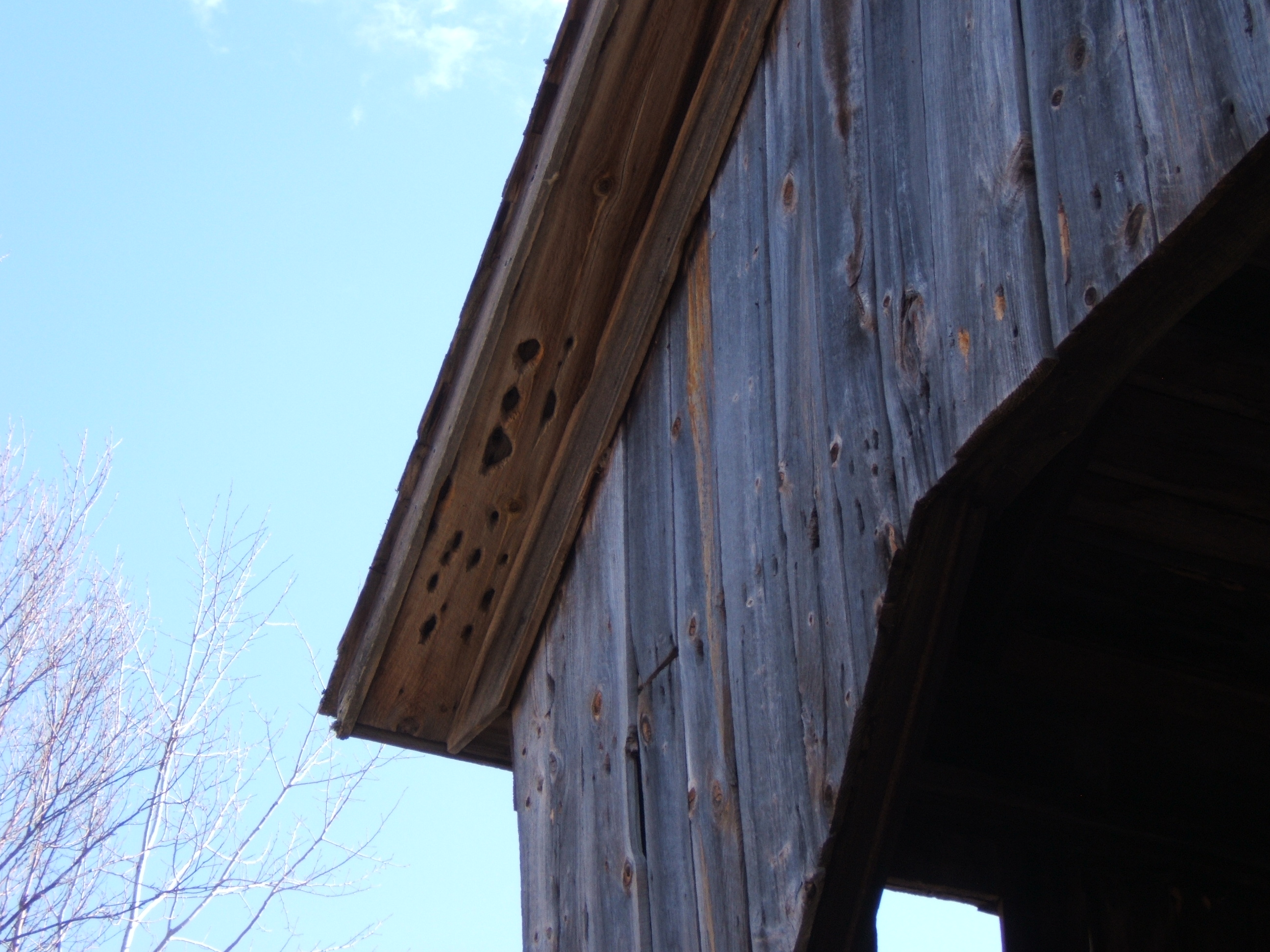 woodpecker holes in an end of the Mill Settlement Covered Bridge – all sorts of possibilities for poetry