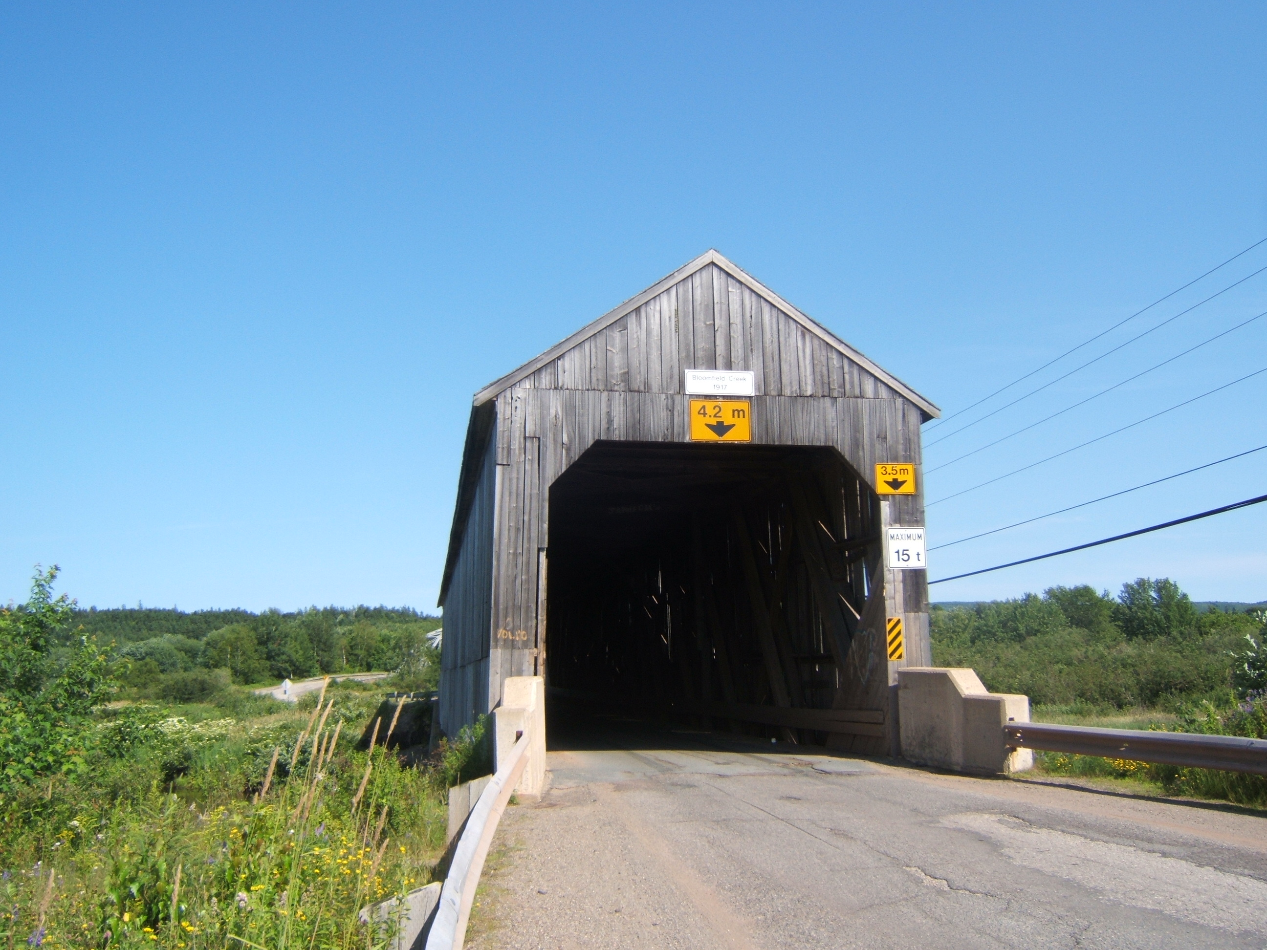Last Saturday we visited a covered bridge on the Kingston Peninsula at Bayswater. The Milkish Inlet #1 (Bayswater Covered Bridge) was built in 1920. At 66.5 meters, it is the longest covered bridge in Kings County, New Brunswick. It is by far the busiest bridge I have seen – it was hard to amble through the bridge since there always seemed to be a car going through and a car waiting.