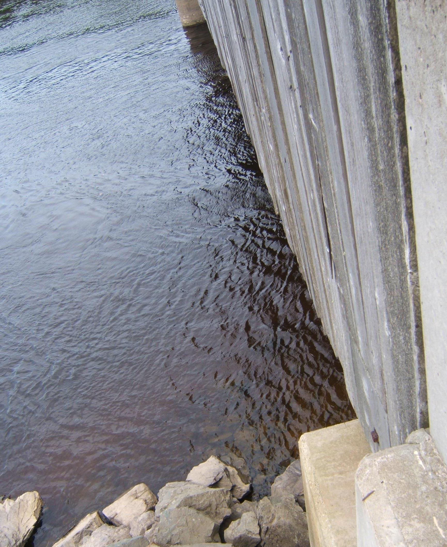 Swimmers, wanting to dive from the height of the bridge, have removed a section of the bridge’s wall boards.