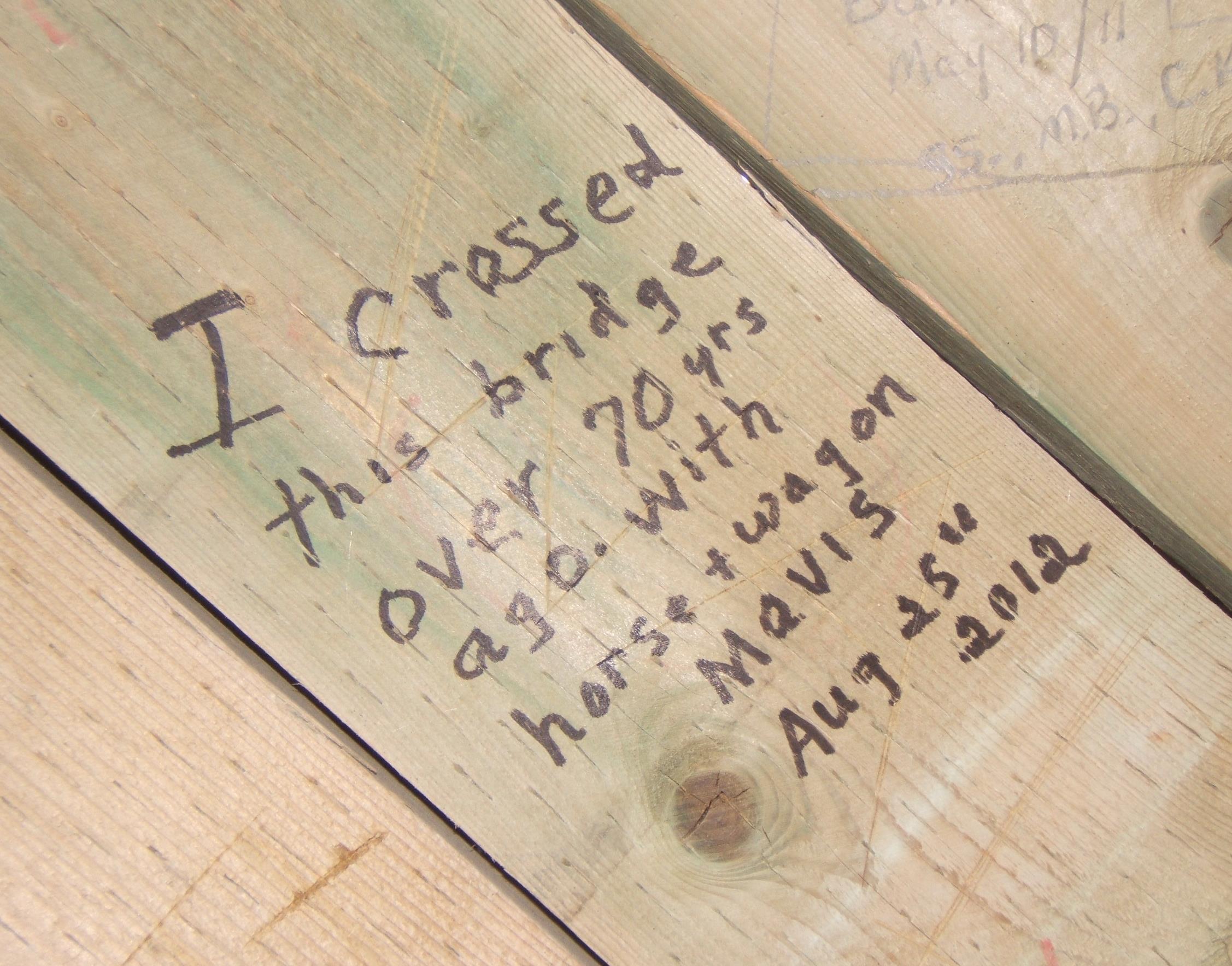 And last weekend, in the covered bridge over the Quisibis River (Quisibis River #2, Pont Lavoie, built in 1951), we found a painting of a horse. Whoever painted the horse resisted the urge to make any other black marks on the bridge walls. Clearly, he or she had a single intent – to depict the horse.