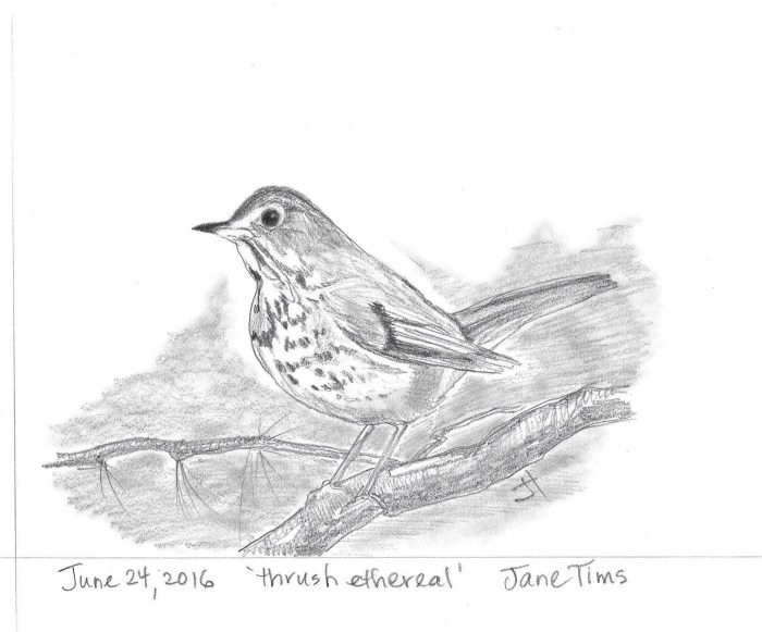 Every morning I listen at my window for the morning bird chorus. This morning, my first Hermit thrush of the year! It is my favorite of the bird songs, melodic and heavenly, phrases repeated in different keys. A year ago, I heard the song and wrote the following poem. For the process I followed in writing this poem, see this.
