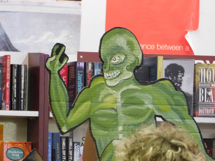- As we left the store at the end of the evening, a group of five young men asked to pose for a photo with the two aliens. They left with a copy of my book so they would know the names of the cardboard stand-ups!