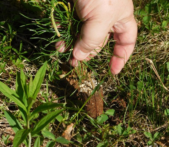 We bought our seedlings at the Irving Tree Nursery in Sussex, $.50 each. We planted them with the help of a metal dibble stick made especially for planting young trees.