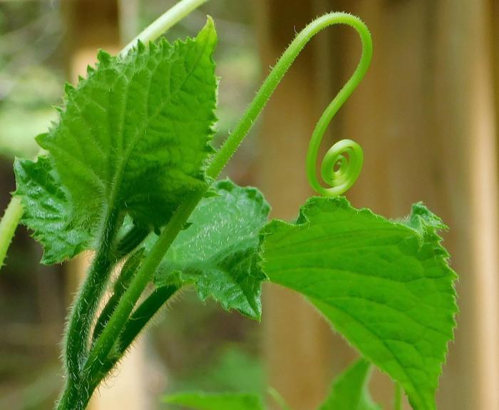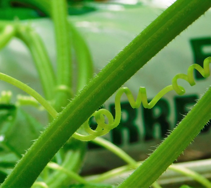 Now the tendrils are searching for support. When the cells of the tendril encounter a surface, such as the edge of a string, the cells respond in such a way to twist the tendril. The resulting coils and spirals are so charming!
