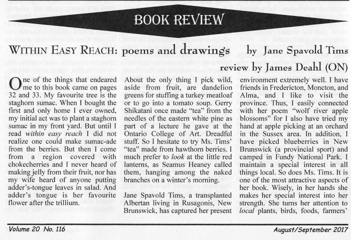 So to add to these greats, I have my own snippet from my poem ‘Bear Creek Meadow by Canoe’ (published in Canadian Stories 14 (82 ), Dec 2011 ):