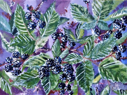 ‘black, blackberries’, Jane Tims, Oct.1, 2017, acrylic, gallery edges, 12″ by 9″