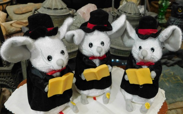 Early in December, I wasn’t certain I’d have the energy to decorate for Christmas in a big way. I asked my husband, “If you only had one decoration this Christmas (besides the tree), what would it be?” He answered, without any hesitation, “The singing mice.” I have since rallied and put up lots of decorations, but the singing mice were the first to be pulled from their box!