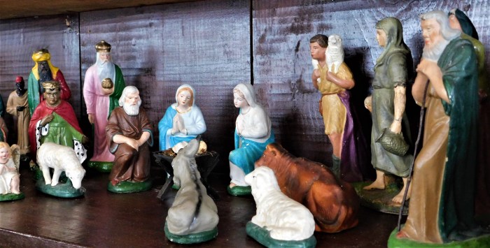 I have quite a few nativity scenes. My favorite is my set of figures by ™Avon. I collected them more than 30 years ago and it was this set we used when my son was little. We used it to tell the story of the Nativity, starting with an empty manger, putting the angels with the shepherds to announce Jesus’ birth, moving the wise men ever closer to the stable.