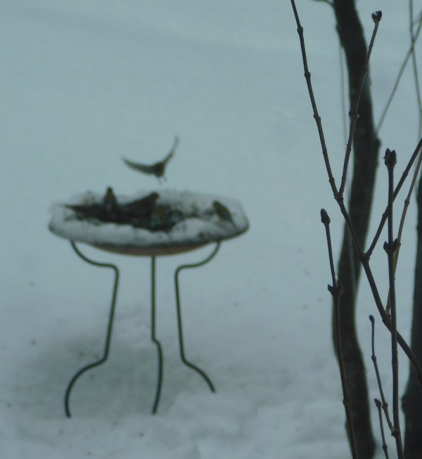 - Hinterland Who’s Who says goldfinches go into feeding frenzies before snowstorms, putting on significant weight before times when seeds are scarce.