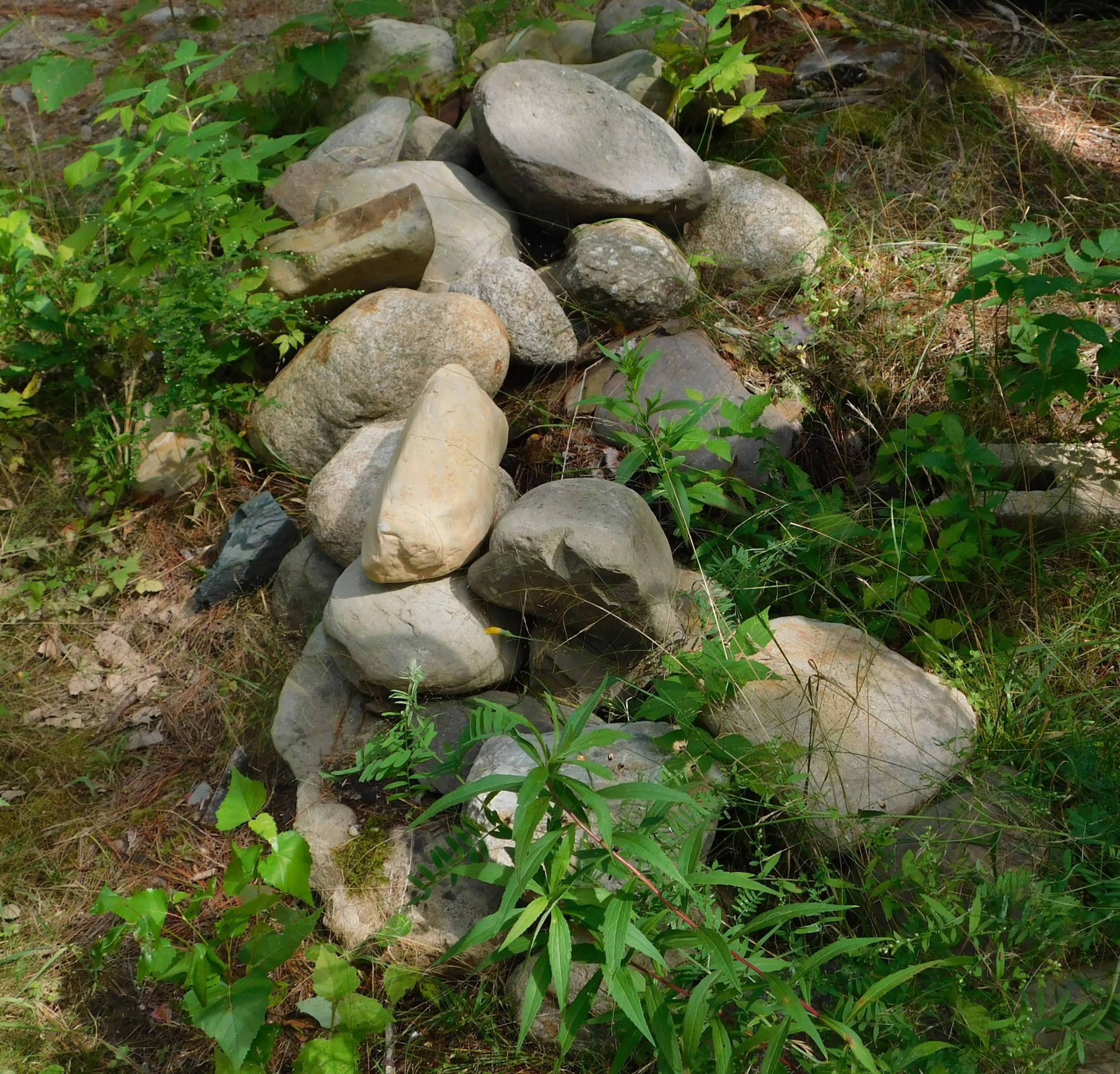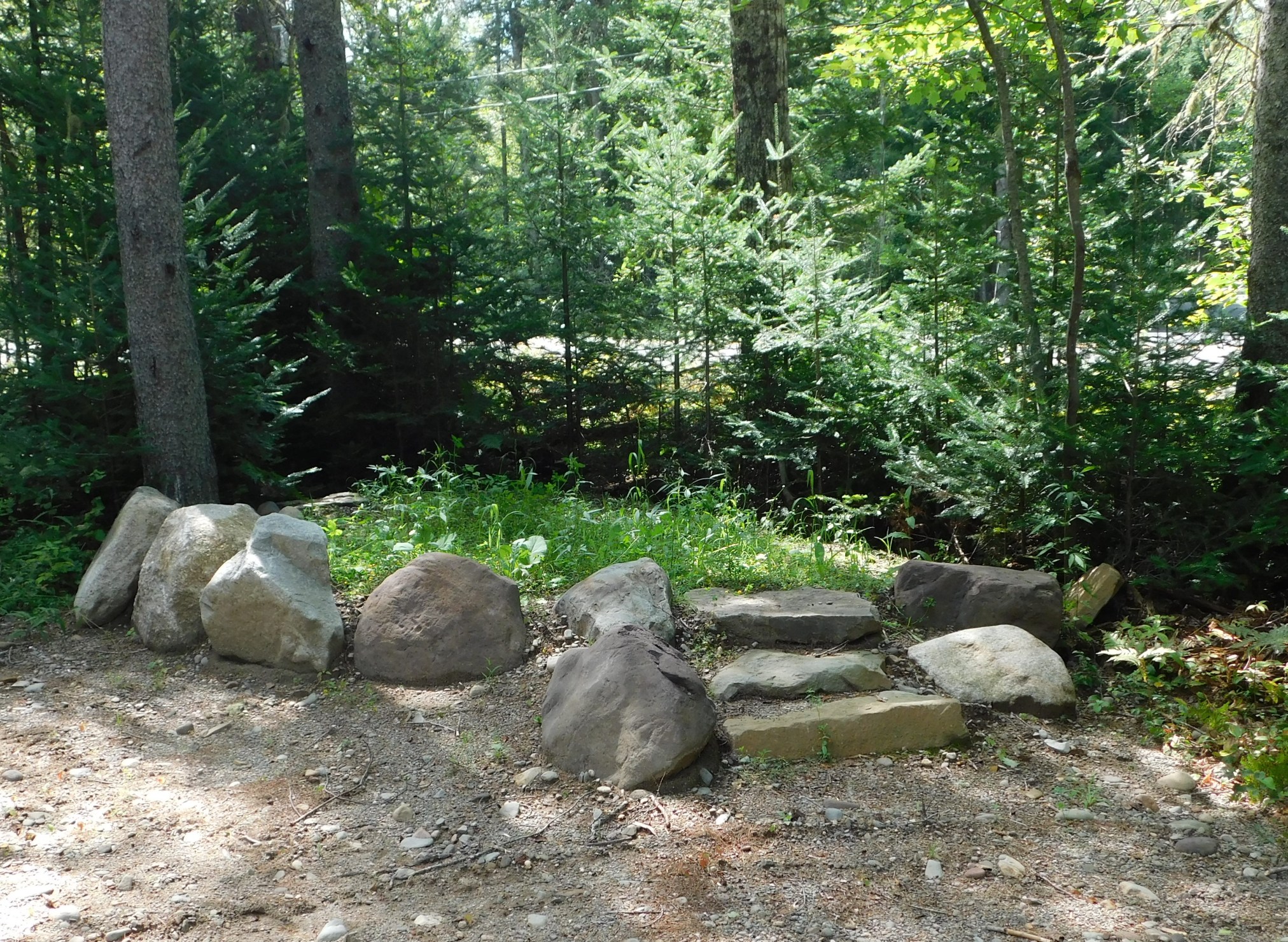Over the years, we built a rock fireplace and added a concrete bench. And, last summer, we brought in gravel and rock to finish the circular roadway and a rock feature I refer to as ‘rockhenge.’