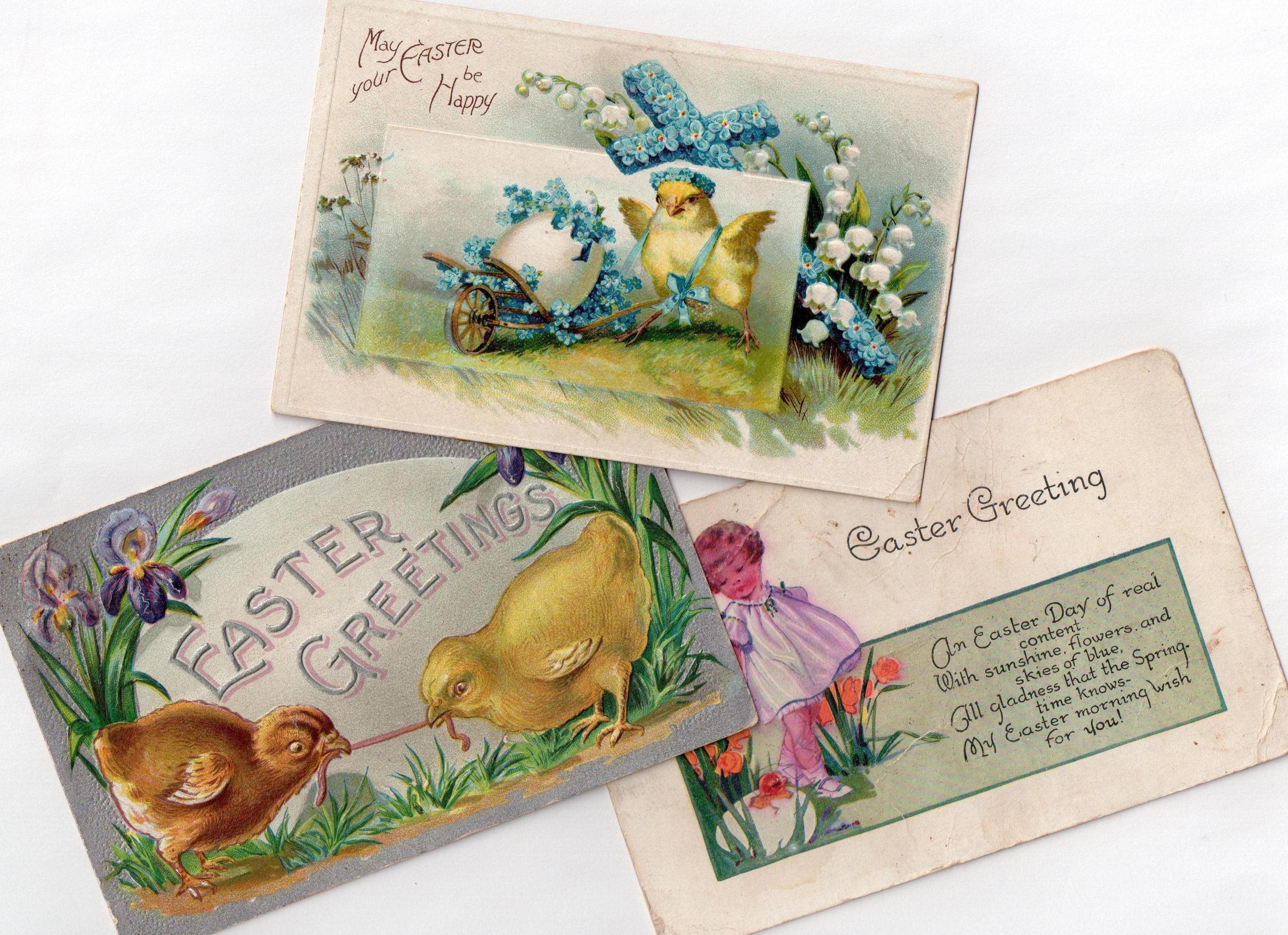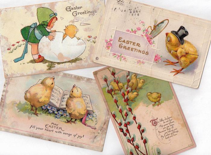 In my collection of old post cards, I have quite a few Easter greetings. The postmarks range in date between 1912 and 1922. Some of the cards are not postmarked, so they must have been delivered personally.