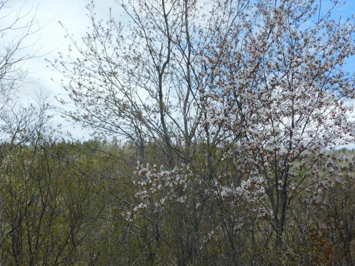 At this time of year, many ditches and fields in New Brunswick are filled with Serviceberry bushes in bloom. Their delicate white flowers only last a short while but later, in summer, we will be able to pick sweet Serviceberries.