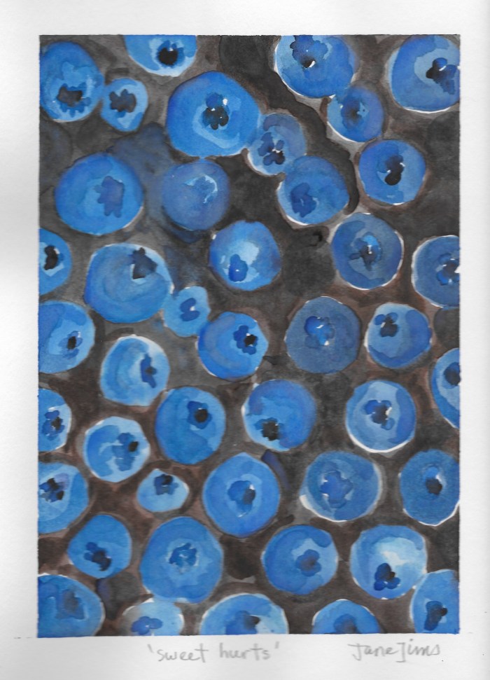 It’s a great year for berries. Our blueberry bushes are loaded with the biggest, sweetest berries I have ever tasted. The raspberries are full and sweet. The blackberries are still mostly unripe but the canes are heavy with future berries.