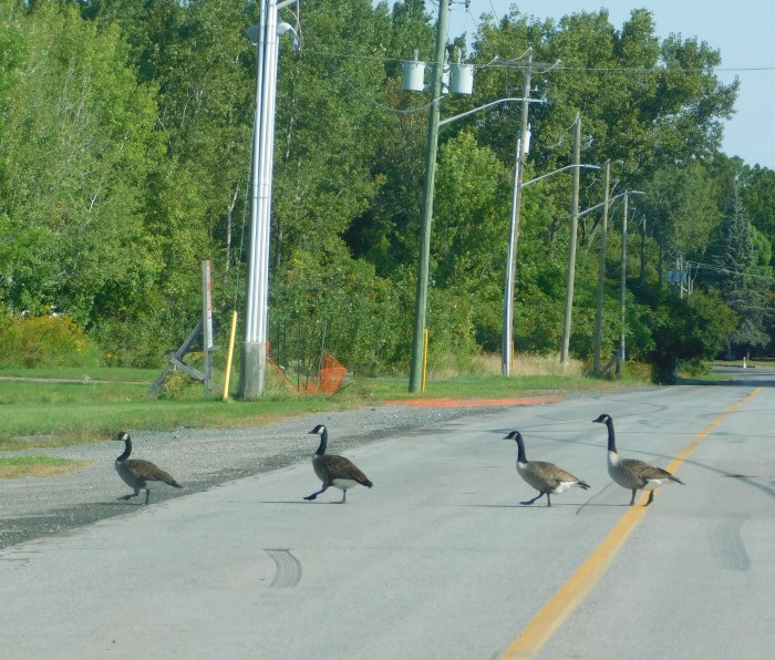 Canada Geese were everywhere. They are considered a nuisance by farmers and almost everyone else. But we enjoyed spotting the flocks in the fields and the ‘V’s in the sky. And once, we waited as a group of geese crossed the road in front of us.