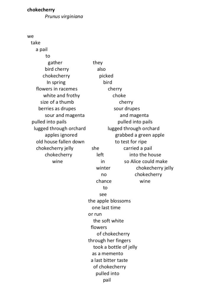 And, a poem about chokecherries, in the shape of the hanging blossoms or berries.