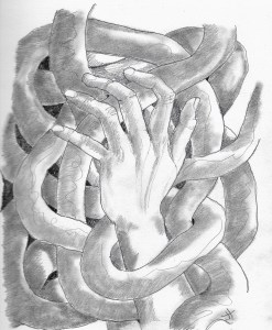 Zachary – survivor of the transport crash; 46 one-suns old; harvested by the Dock-winders in 2008 when he worked as a carpenter with his father’s company in Fargo, North Dakota; educated as an engineer; harvested as he made repairs to a roof during a wind storm; used by the Dock-winders as the laser-sawyer in a grammid mill; spent most of grad school playing Sonic the Hedgehog ™ and eating pickled eggs in the campus grad house.~