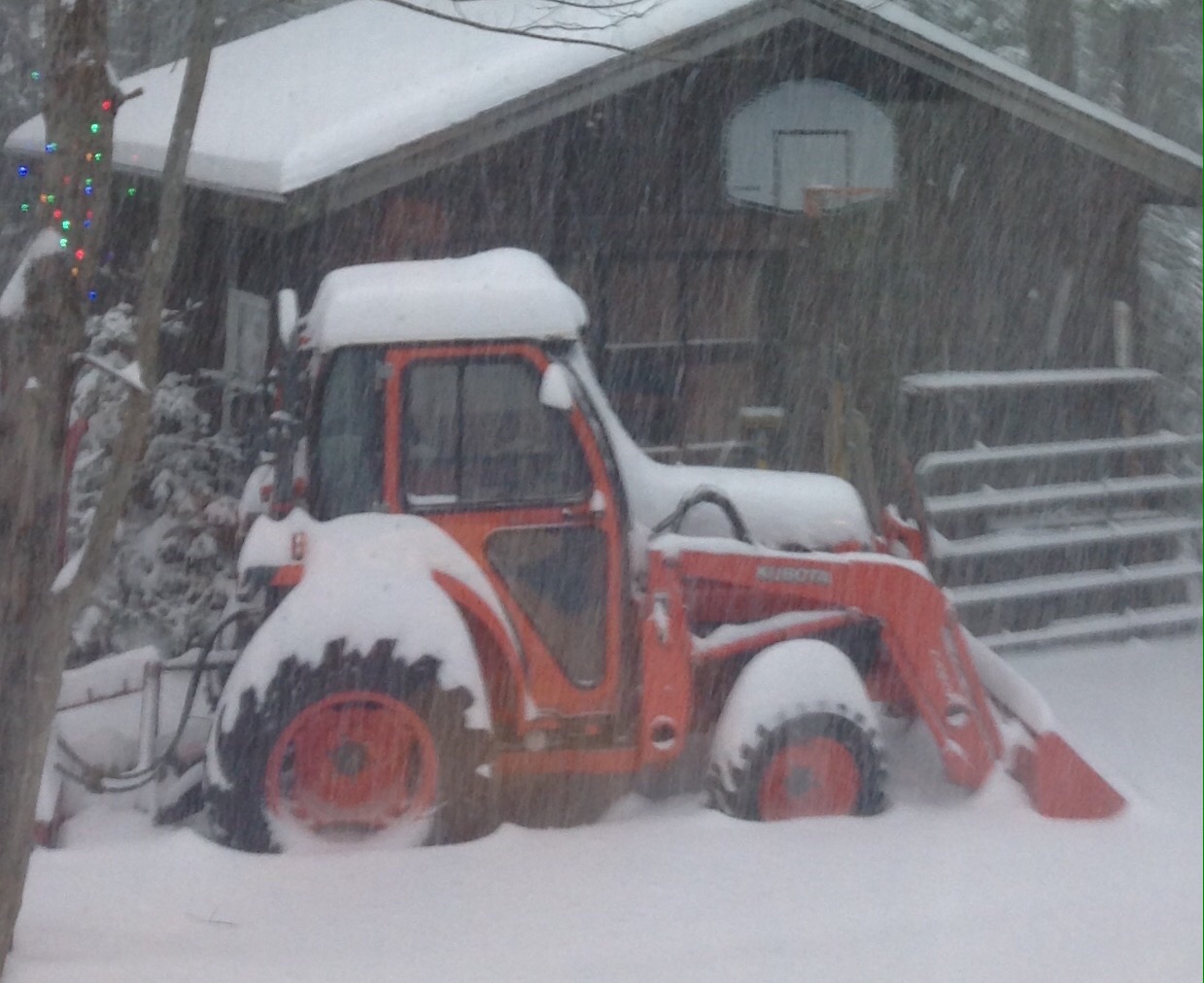 The weather can change all of this. My husband has a 40 horsepower tractor equipped with a front end loader and a snow-blower. On snow days, he plows or blows snow from his customer’s driveways. On these days, I am the ‘support worker’. I answer the phones, keep track of where my husband is blowing snow, deliver diesel when he runs low on fuel and take him his dinner.